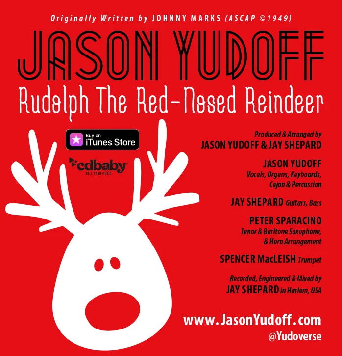 Kudos to my co-conspirators: Jay Shepard, my co-producer and engineer who also plays guitars/bass, Peter Sparacino with the tenor/bari sax/horn arrangement and Spencer MacLeish on trumpet! Special thanks to Joe Dalo who directed our Rudolph Mash-Up video!